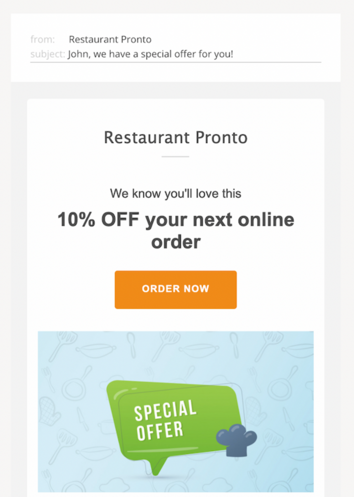If they’ve ordered from you in the past but you haven’t heard from them in a while, you can send them an email with a discount. This will remind them of your amazing food and motivate them to place a new order.