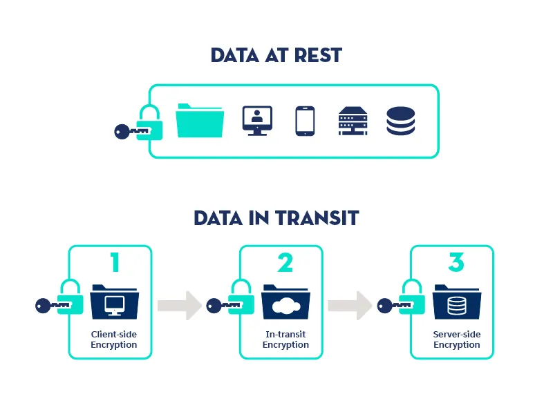 Most data security issues affect data in transit (during communication) or at rest (in storage). Data encryption ensures that the data is unreadable by unauthorized users.