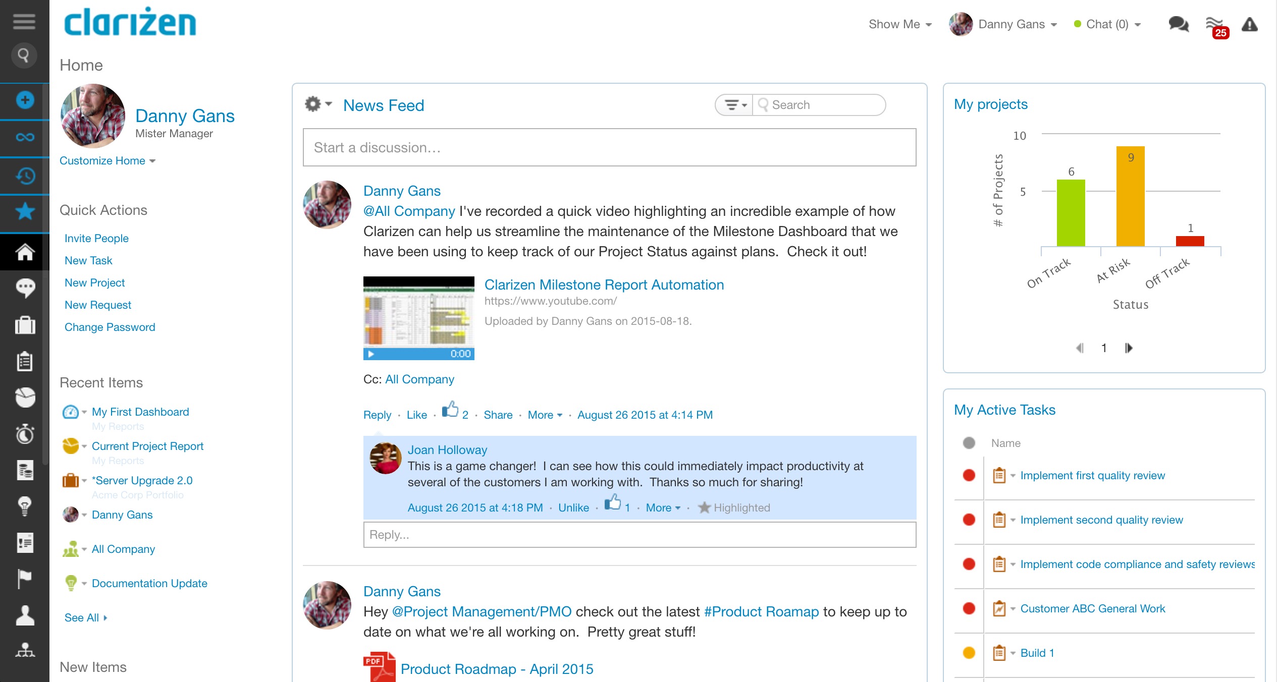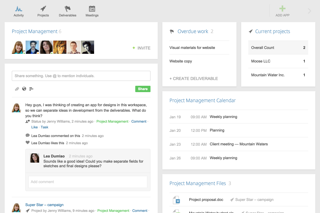 - Active collaboration – using a very recognizable update wall for updates and comments