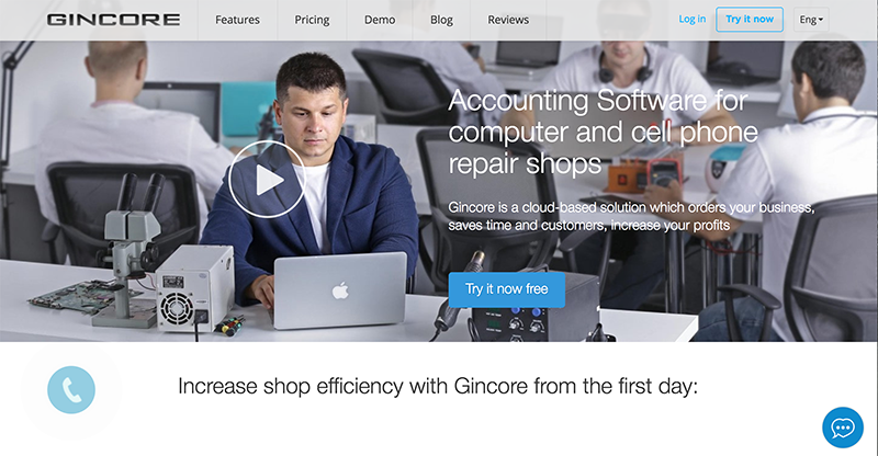 Gincore is a cloud-based accounting and CRM software that caters specifically to computer and cellphone service centers and repair shops. It integrates core capabilities of ERP (enterprise resource planning) CRM (customer relationship management), WMS (warehouse management), and accounting into a single, unified package, providing you with all the tools you need while reducing complexities and bringing down costs significantly.