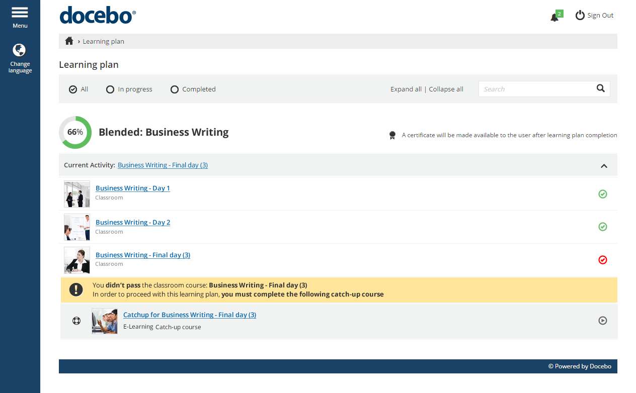 - It has gamification tools that offer achievements, badges, points based on learners’ outcomes