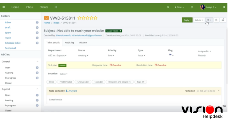 Vision Helpdesk is all-in-one helpdesk system that empowers you to manage various channels like calls, email, chat, web forms, Twitter, and Facebook under a single roof.