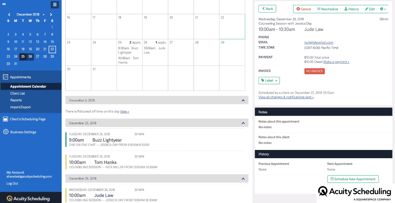 The platform can also be integrated with payment solutions like Braintree, PayPal, and Square, so you can accept online payments on your website. Integrations with other services like Zapier and Quickbooks make Acuity Scheduling an even more powerful scheduling solution for your business.