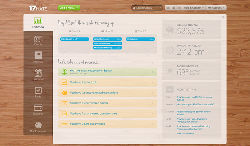 17hats is a BPM product that enables you to automate your business processes. This tool can be used by small businesses to manage operations such as billing, scheduling, meetings etc. without needing paperwork. It also offers useful features for freelancers and individual workers such as photographers to help them manage multiple clients. Top features include client profile management, online contract signing, invoice management, workflow automation, and lead generation. If you wish to look at more apps, browse the reviews of these 17hats alternatives.
