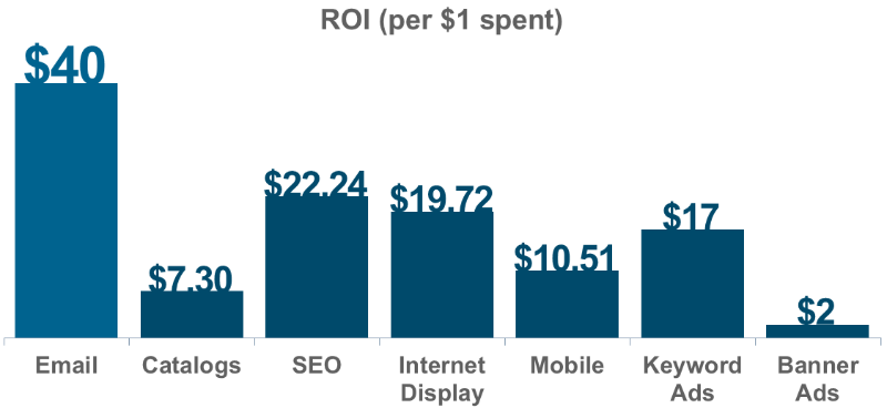 Over the years, plenty of market researches have indicated the effectiveness of email marketing strategies. To start, 205 billion emails are sent every day and email users are predicted to grow to three billion by 2020. Email marketing also has an average ROI of $40 for every dollar spent, making it one of the most profitable strategies to date.