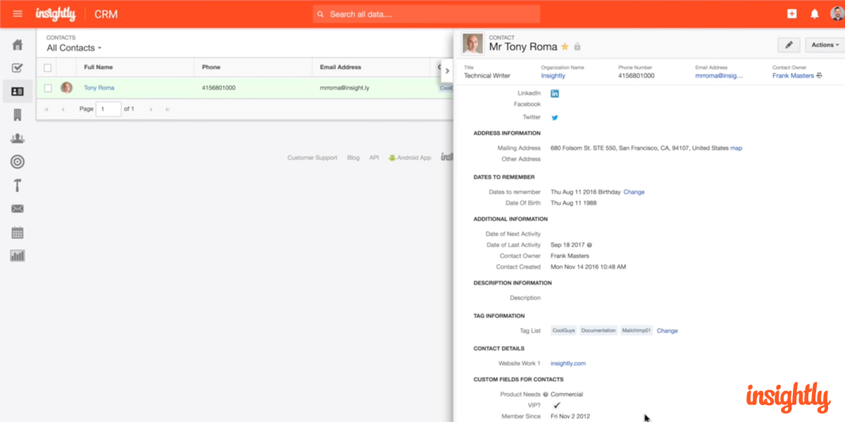 Insightly makes it easy for users to capture leads and close in deals. The platform allows users to capture leads in multiple ways, including via scanning business cards through its mobile CRM application. Leads can be automatically routed to the right agents in real-time so they can act on each hot prospect. The platform features workflow automations with multi-step processes as well, including automated email sending, data entries, and much more, thus, allowing you to drastically reduce administrative work and focus on more important endeavors.