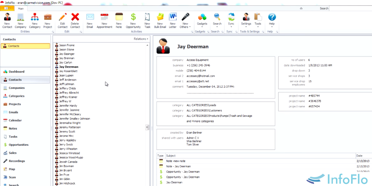 InfoFlo makes contact management a breeze by storing and tracking all vital information about specific business contacts or companies on a single platform. It gives users the power to manage more than basic contact information, allowing them to display contact relationships, shared projects and all your engagements with them on various platforms such as emails and phone calls and linking all activities together. Notes and tasks can also be assigned to leads and prospects so your team can close in deals.