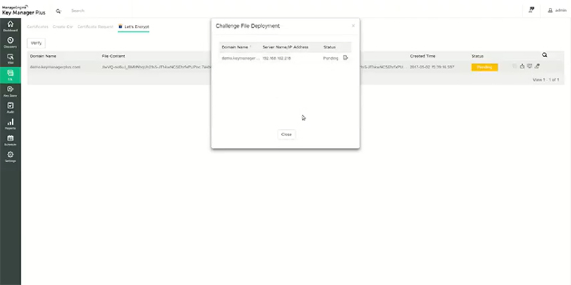 A web-based key management solution, ManageEngine Key Manager Plus allows users to consolidate, control, manage, monitor and audit Secure Shell (SSH) and Secure Sockets Layer (SSL) certificates’ life cycle. It treats users with total visibility into SSH and SSL environments as it grants total control over keys, which prevent breaches and ensures compliance with relevant policies.