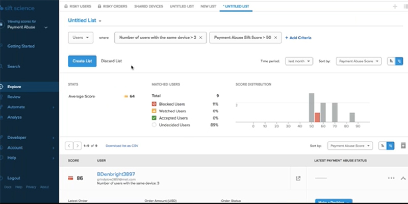 Sift Science is a powerful fraud detection and prevention software designed to let businesses provide clients with secure and enjoyable online shopping. A cloud-based learning platform powers the system, using over 16,000 regularly updated fraud signals. The solution has a wide array of features such as device ID fingerprinting and IP address and social data analysis.