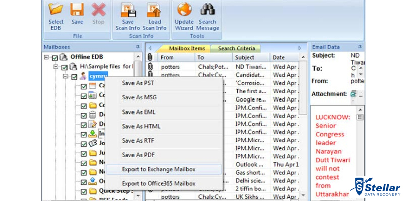 With Mailbox Exchange Recovery, you can even search corrupt mailboxes based on criteria like recipients, subjects and others. If you want more streamlined output, you can use other filters such as “any criteria,” and “exact match.” The software provides a preview of recoverable items, helping users choose emails that they want restored.