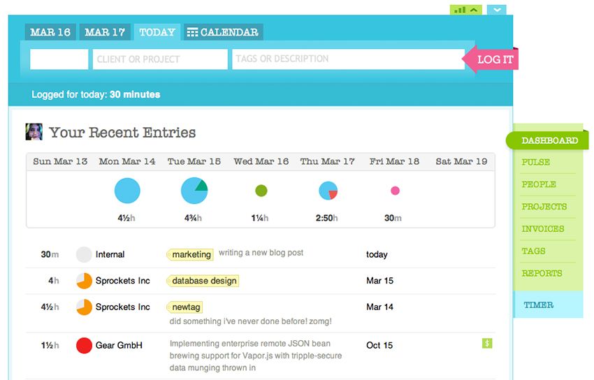 Intervals is an all-inclusive project and task management solution that features robust time tracking capabilities. Powerful project management tools, like visual dashboards, real-time graphs, and budget estimates, are at your disposal. Tasks can also be broken into milestones and the daily assignments are sent through email. Jobs can be rescheduled easily and smoothly through the drag and drop interface. Moreover, Intervals features accurate time tracker that can simply be clicked and then you can get back to work. It’s accompanied by visual reports, mobile app, and timesheets that can be submitted weekly for approval.