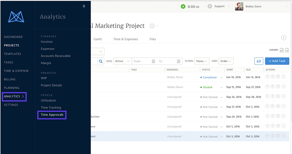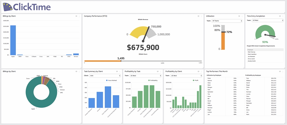 - Real-time time and expense reports let you analyze time and expenses tracked across your organization.