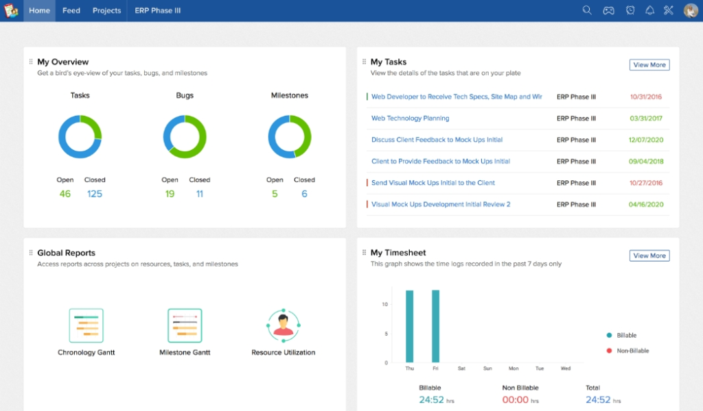 Popular PM system Zoho Projects is designed to assist you in making your processes more efficient so you can finish projects within your timetable. It is equipped with features to improve team collaboration, facilitate project monitoring, and enhance your productivity and output. Getting work done on time with Zoho Projects is made possible with its milestones, tasks, and task lists to plan your work in advance. It is able to divide large and complex projects into manageable units as well as schedule recurring tasks and subtasks based on your deadlines.