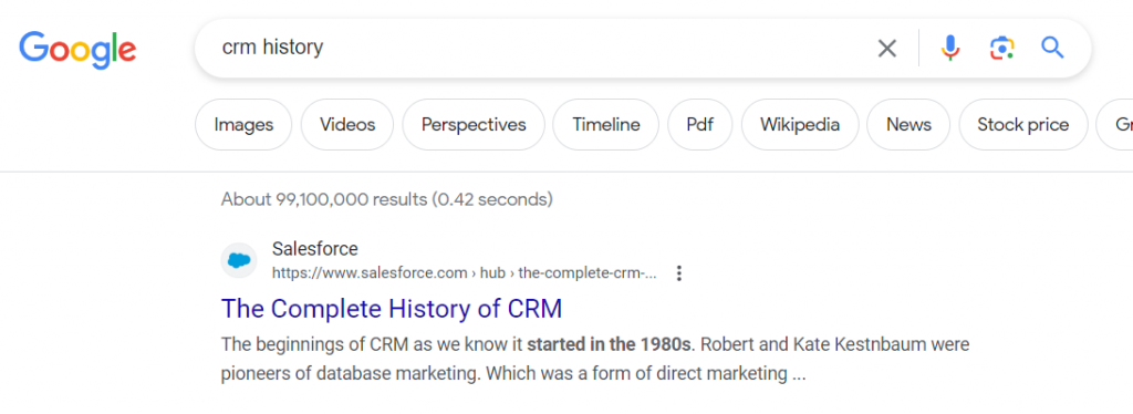 For instance, if your business was looking for CRM software and you took your investigation to Google, maybe you’d search for: