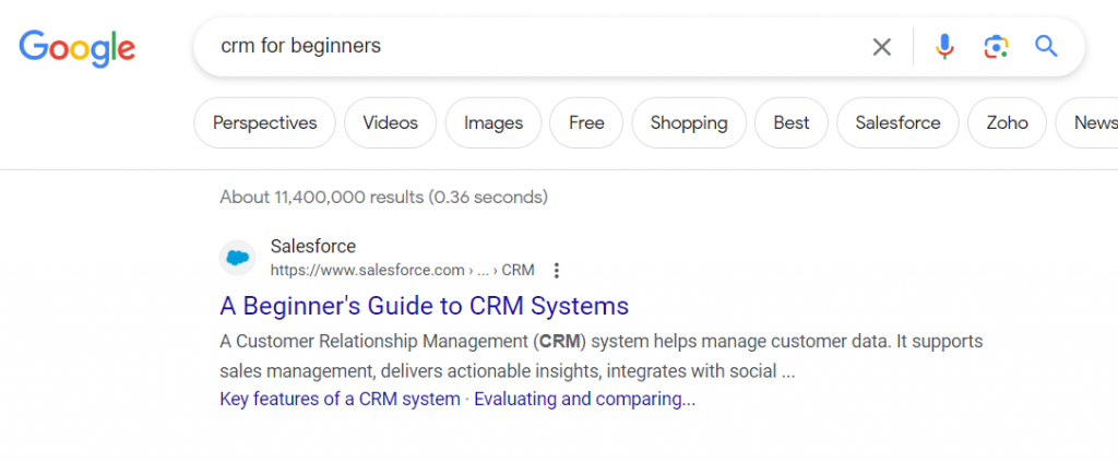 If you performed any of those Google searches, guess what the top result is for each one? Salesforce.